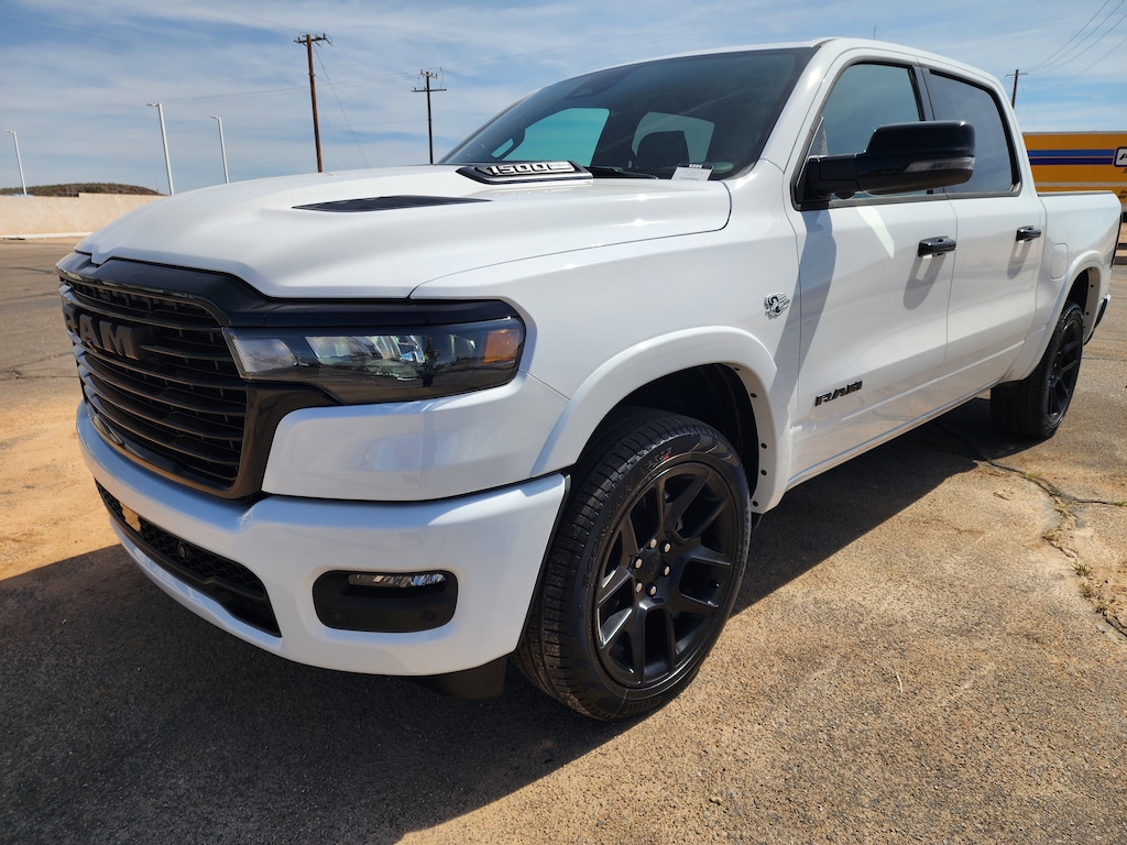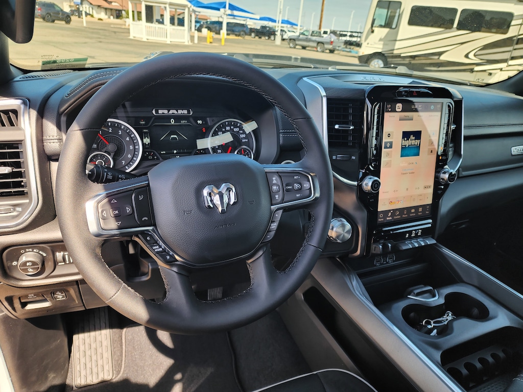 QUICK ORDER PACKAGE 27H LARAMIE -inc: Engine: 5.7L V8 HEMI MDS VVT eTorque, Transmission: 8-Speed Automatic (8HP75) , WHEELS: 22" X 9" FORGED ALUMINUM -inc: Tires: 285/45R22XL BSW All Season, Pirelli Brand Tires, TRANSMISSION: 8-SPEED AUTOMATIC (8HP75) (STD), TRAILER BRAKE CONTROL, TIRES: 285/45R22XL BSW ALL SEASON, NIGHT EDITION -inc: Black Headlamp Bezels, Wheels: 22" x 9" Forged Aluminum, Tires: 285/45R22XL BSW All Season, Pirelli Brand Tires, Proximity Approach/Departure Lamps, Anti-Spin Differential Rear Axle, Accent Color Door Handles, Black Interior Accents, Body Color Front Bumper, Grille Surround 3 Black Texture 2 Black, Body Color Rear Bumper w/Step Pads, RAM Grille Badge - Black, Black Painted Exterior Mirrors Caps, Exterior Mirrors Approach Lamps, Accent Color Premium Power Mirrors, Sport Performance Hood, Black Exterior Truck Badging, Accent Color Tailgate Handle, Dual Exhaust w/Black Tips, Black Tail Lamp Bezels, ENGINE: 5.7L V8 HEMI MDS VVT ETORQUE -inc: 48V Belt Starter Generator, Heavy Duty Engine Cooling, Passive Tuned Mass Damper, Delete Alternator, Passive Cold End Exhaust, 18" Aluminum Spare Wheel, BRIGHT WHITE CLEARCOAT, BLACK, LEATHER TRIMMED BUCKET SEATS, ANTI-SPIN DIFFERENTIAL REAR AXLE.