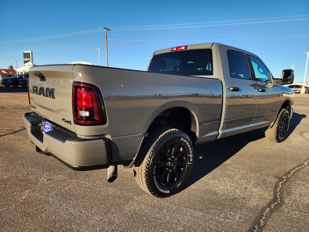 QUICK ORDER PACKAGE 24Z BIG HORN -inc: Engine: 6.7L I6 Cummins HO Turbo Diesel, Transmission: 8-Speed TorqueFlite HD Automatic, OFF ROAD PACKAGE -inc: Tires: LT275/70R18E OWL On/Off Road, Transfer Case Skid Plate Shield, Front Performance Tuned Shock Absorbers, Hill Assist, Rear Performance Tuned Shock Absorbers , WHEELS: 20" X 8.0" BLACK PAINTED ALUMINUM, TRANSMISSION: 8-SPEED TORQUEFLITE HD AUTOMATIC, TRANSFER CASE SKID PLATE SHIELD, TIRES: LT285/60R20E OWL ON/OFF ROAD, REMOTE START SYSTEM, RADIO: UCONNECT 5 NAV W/12.0" DISPLAY, POWER 2-WAY DRIVER LUMBAR ADJUST, NIGHT EDITION -inc: Gloss Black Nostrils/Mic Black Grille, Tires: LT285/60R20E OWL On/Off Road, Black Exterior Truck Badging, Wheels: 20" x 8.0" Black Painted Aluminum, Body Color Grille-Surround, Black Interior Accents, Black Wheel Center Hub, Painted Front Bumper, Painted Rear Bumper.