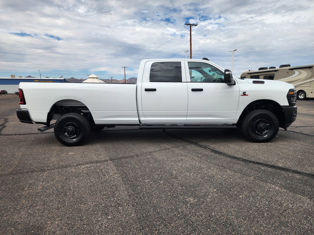 QUICK ORDER PACKAGE 24A TRADESMAN -inc: Engine: 6.7L I6 Cummins HO Turbo Diesel, Transmission: 8-Speed TorqueFlite HD Automatic , WHEELS: 17" X 7.5" BLACK STEEL STYLED (STD), TRANSMISSION: 8-SPEED TORQUEFLITE HD AUTOMATIC, TIRES: LT245/70R17E BSW AS (STD), RADIO: UCONNECT 5 NAV W/12.0" DISPLAY, MOPAR BLACK TUBULAR SIDE STEPS, GVWR: 11,040 LBS, ENGINE: 6.7L I6 CUMMINS HO TURBO DIESEL -inc: Selective Catalytic Reduction (Urea), Dual 730 Amp Maintenance Free Batteries, Cummins Turbo Diesel Badge, Heavy Duty Engine Cooling, Diesel Exhaust Brake, Supplemental Heater, 3.42 Axle Ratio, Front Bumper Sight Shields, Capless Fuel Fill w/o Discriminator, GVWR: 11,040 lbs, BRIGHT WHITE CLEARCOAT, BLACK, CLOTH 40/20/40 BENCH SEAT.